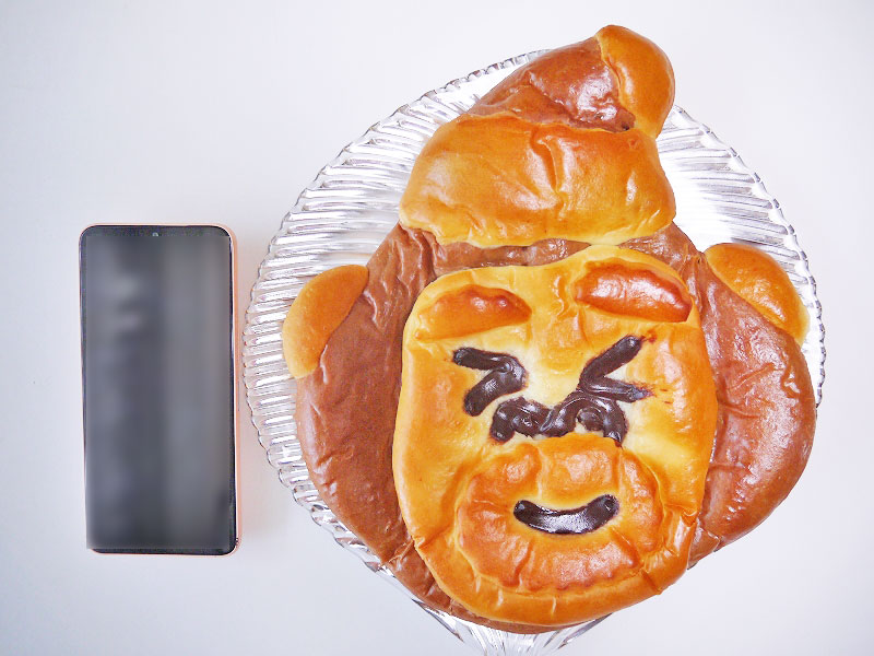 どれくらい大きいかというと、これくらい。チョコ生地に中にはバナナクリームが挟んであって、お味も大満足なおちゃめなゴリラパンでした~♪