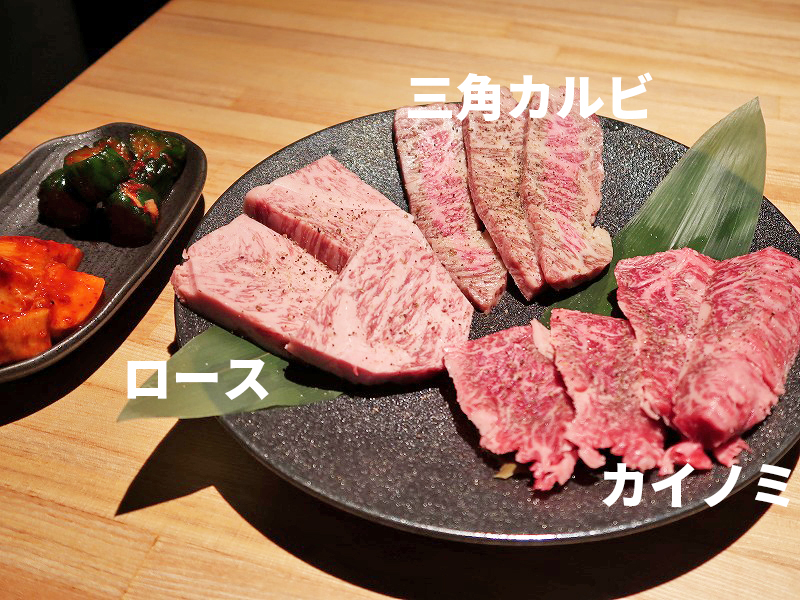 日替わりの牛3種、今回はロース、三角カルビ、カイノミだそうです。