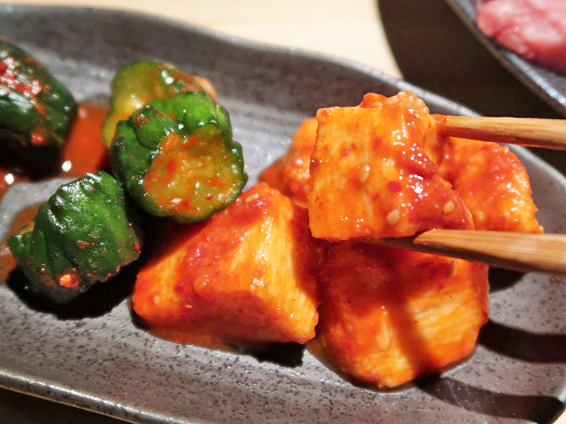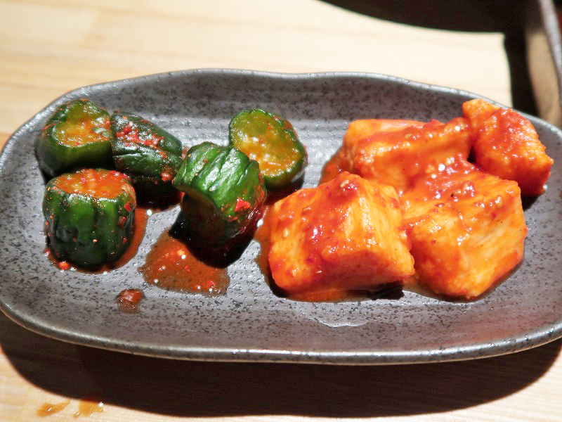 一通りお肉を堪能したら、ちょっとキムチで箸休め。きゅうりと カクテキ(大根)かな?と思って食べたら