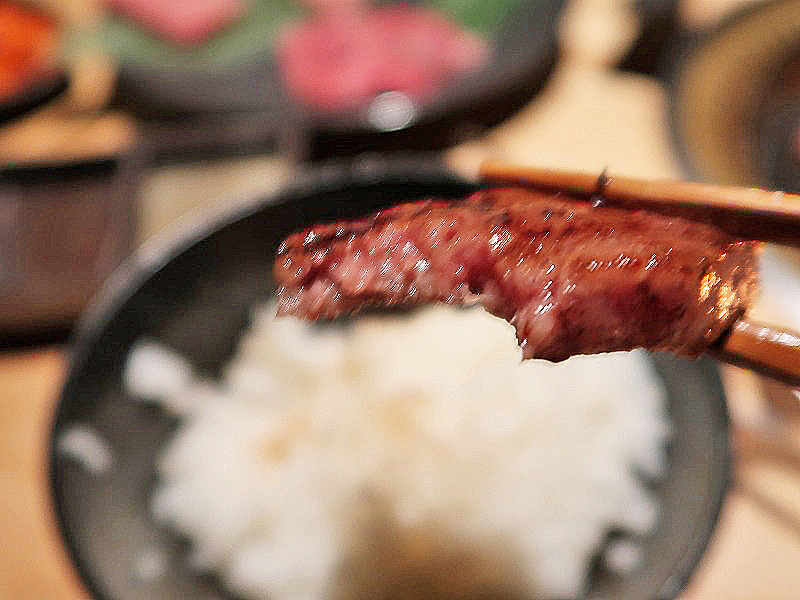 良い薄さなので・・・お米巻いて食べると、肉の脂と米の甘みがベストマッチ。