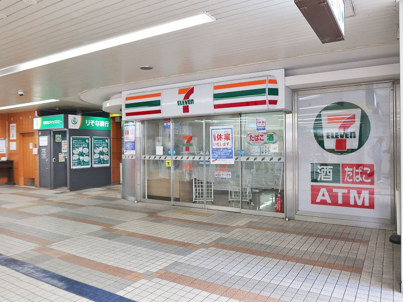 大阪モノレールの千里中央駅改札出てすぐにある「セブンイレブン モノウェル千里中央店」が休業している/リフレッシュオープンは3月下旬予定