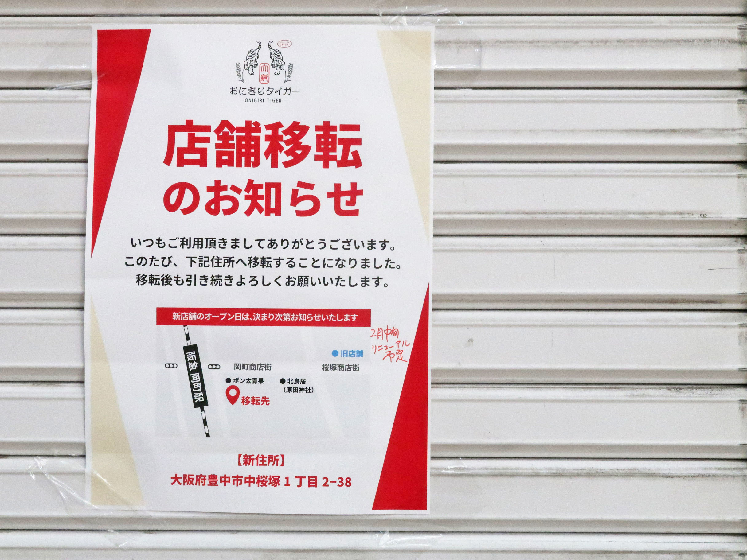 中桜塚にある「おにぎりタイガー」が移転するようです。
