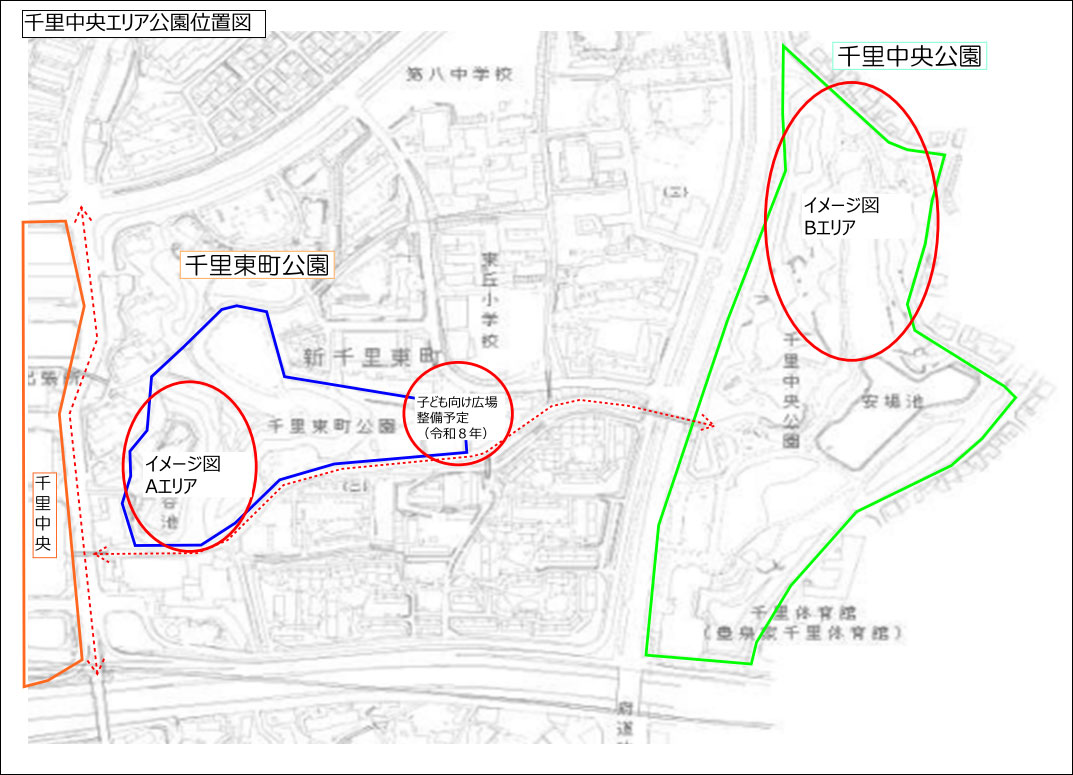 千里中央エリアの再開発に関するリリースでも「千里東町公園と連携した交流機能・都心居住機能の導入を検討(広場など)」と発表されていたので阪急阪神不動産株式会社より引用