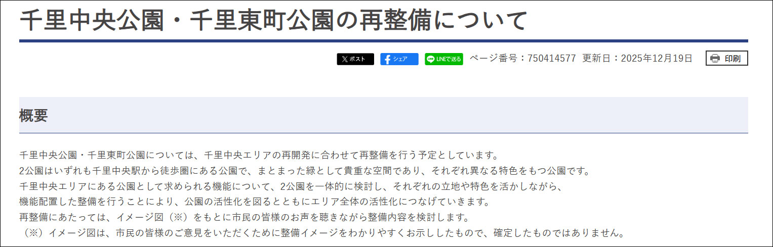 「千里中央公園」と「千里東町公園」が再整備されるようです。※千里中央公園