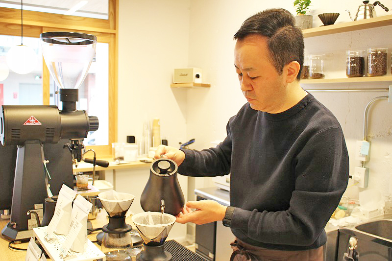 こちらに座ってコーヒーの出来上がりを待てるのも嬉しいですね。