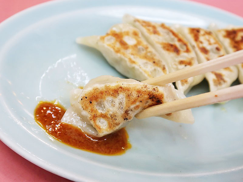 キャベツの甘みが弾ける餃子に、ピリ辛の味噌ダレがマッチしすぎてホンマに美味いのよ!