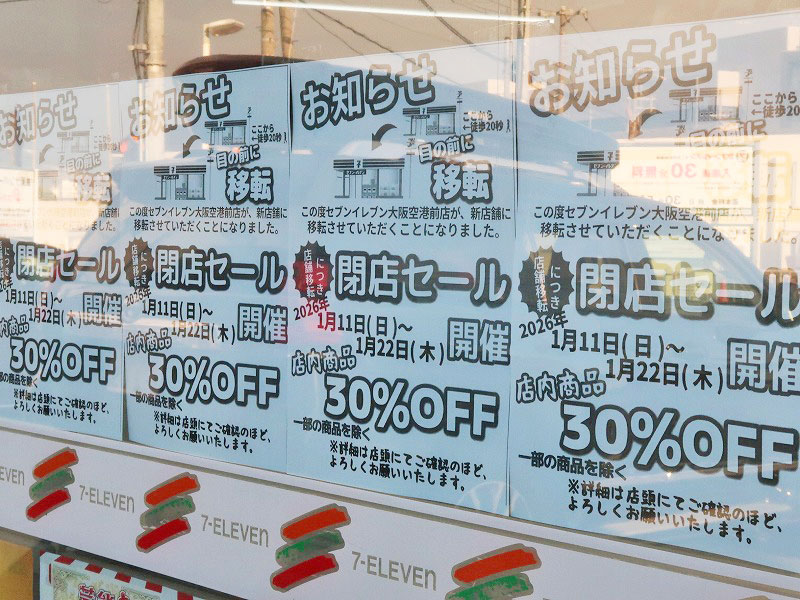 大阪空港近くにある「セブンイレブン 大阪空港前店」が移転するようです。