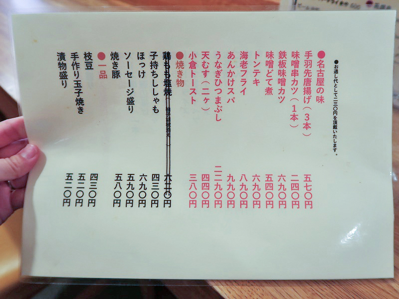 できあがりを待つ間 夜のメニューを拝見するとしましょうか。さすが、名古屋メシが色々ありますね~。