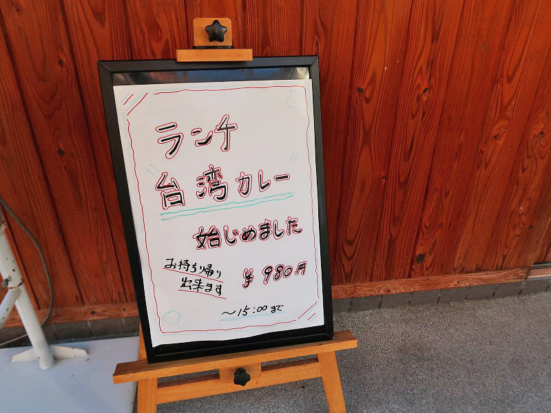 ランチをやっているときはこちらの看板が出てるみたい。お持ち帰りもできるんだって。