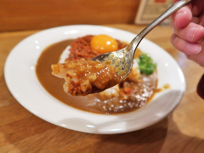 卵のまろやかさで辛さがさらに引き立ち、美味しい。けど一体君は何料理なんだ?!という新感覚の味わいに!