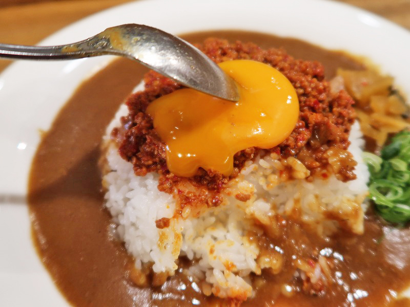 カレー、ひき肉、卵と味変しながら食べられるので、一皿があっという間に感じました。ごちそうさまでした。