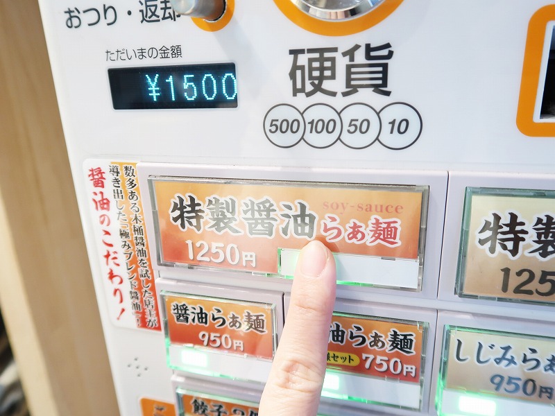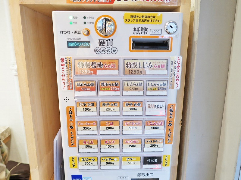 引き違い戸の1番右側を開けると、券売機があるので、こちらで先に購入するシステム。