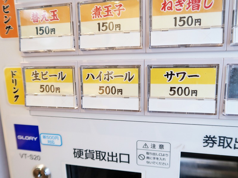 ドリンクは生ビールなどがあり、これも券売機で買うシステムですね。