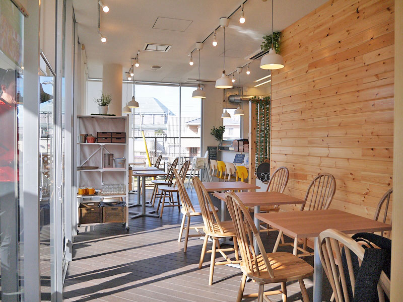 店内はこんな感じ。縦の長くて全面ガラス張りの明るいお店♪