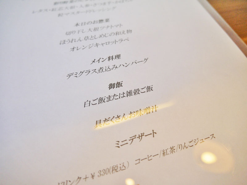 そしてこちらがランチのメニュー。確かに栄養バランスばっちりで身体に良さそうなメニューですね。