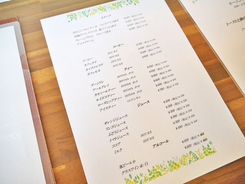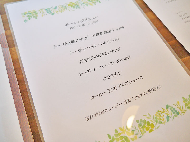 それでは待っている間に、他のメニューも拝見しましょうか。こちらはモーニングのメニュー。