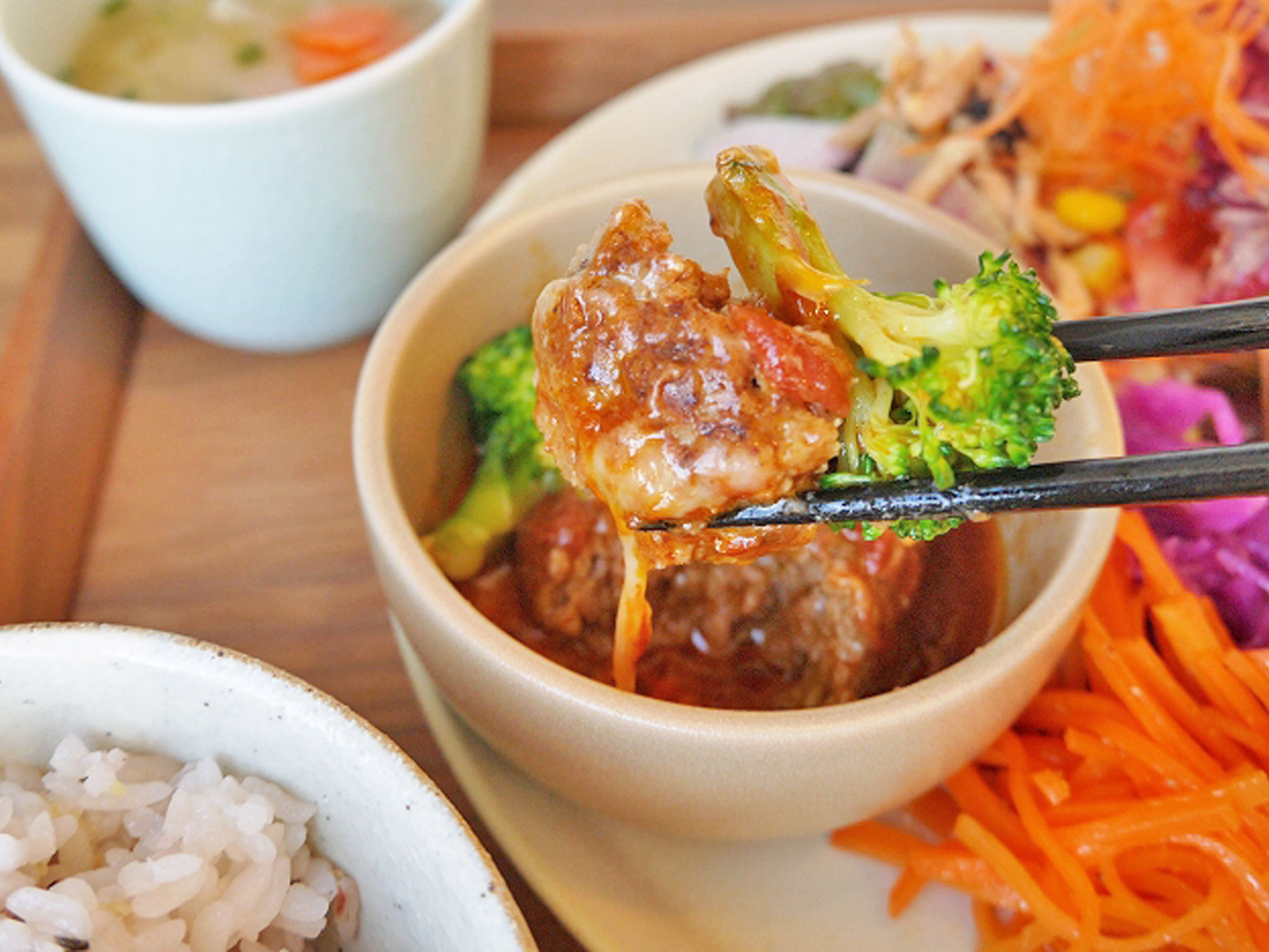 もちもちな雑穀米は、どの食材とも相性良し。