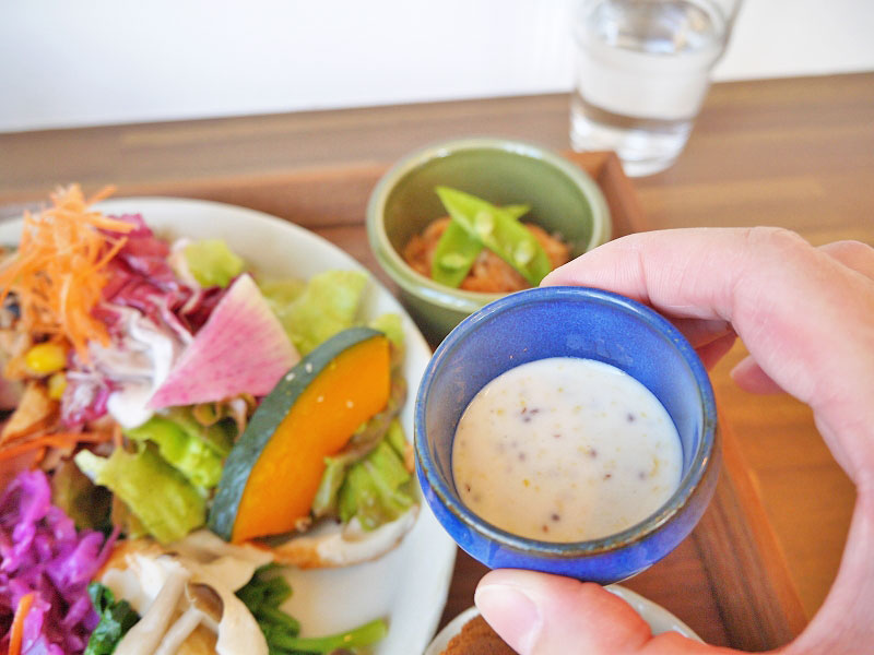葉物野菜や根菜に粒マスタードのピリッとした辛味が加わり、これいくらでも食べれられちゃうわ。