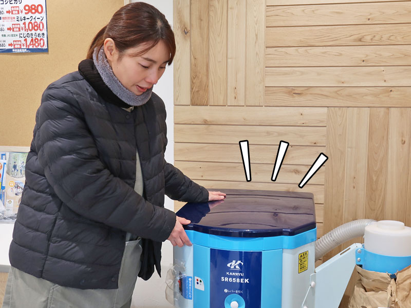 ーこれってたぶん精米機ですよね?いつもはスーパーで袋入りのやつ買ってるので使う機会はほぼないんですよ