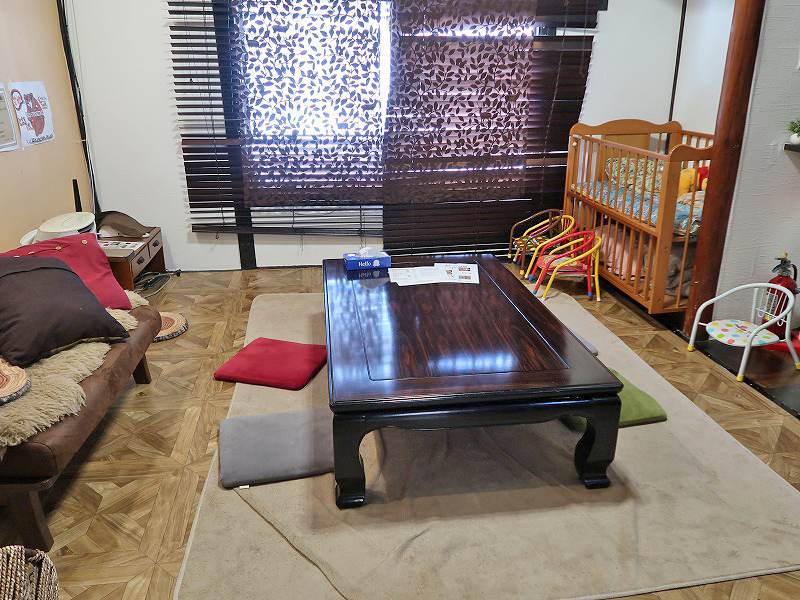 キッズスペースの奥にこんな広いお部屋が。今回はこちら部屋を使わせていただくことに。