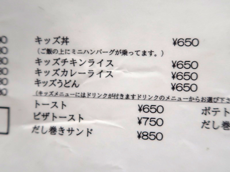 お子様メニューは小さいお子さんでも食べられそうなものから、小学生のお子さんでも好きそうなものまで。