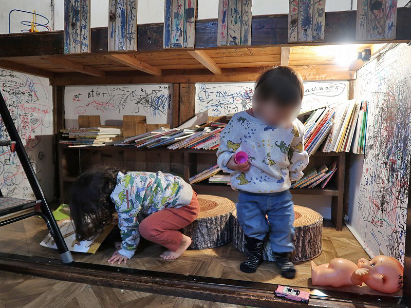 もう半分は押し入れを改造したのかな?下は絵本が置いてあって