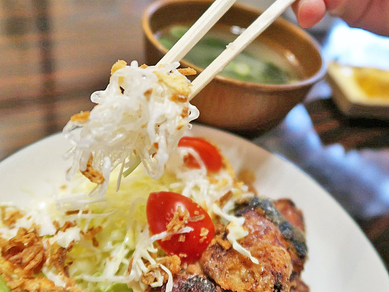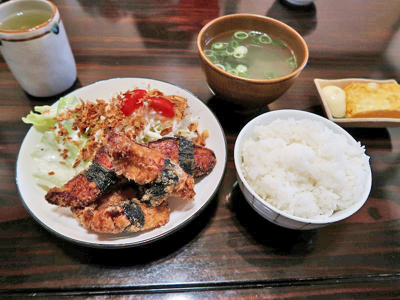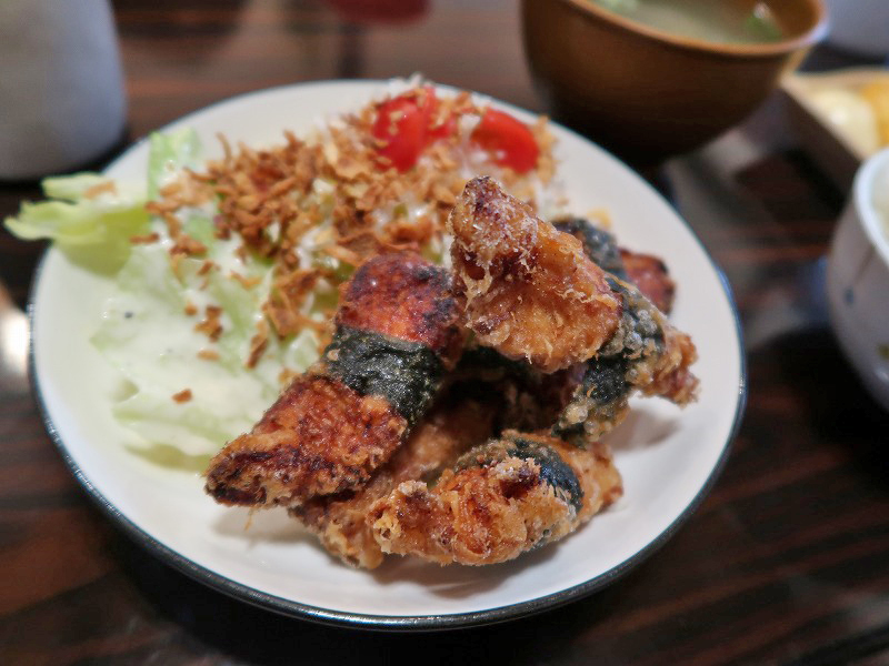 では私もさっそく、日替わりメインの「鶏むね肉 磯辺揚げ」からいただきまーす。