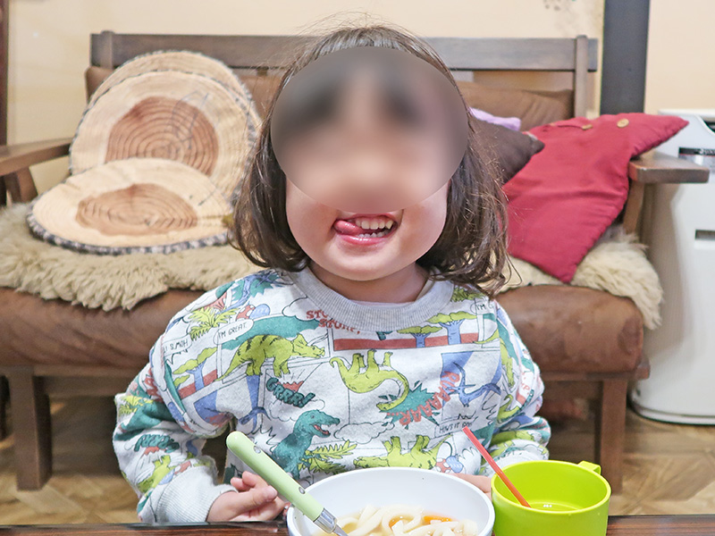 キッズうどんは見た目が可愛い上に「ぬるめ」で提供されるので親がフーフーしなくてすむ気遣いまで!