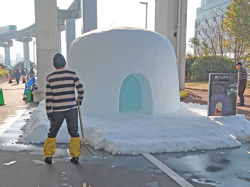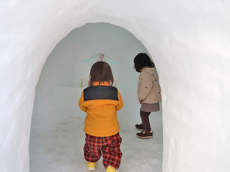 10時丁度にかまくらでの記念撮影がスタートすると、ゆっくりですが列が進み