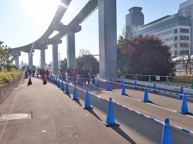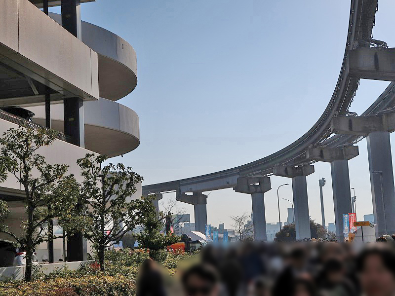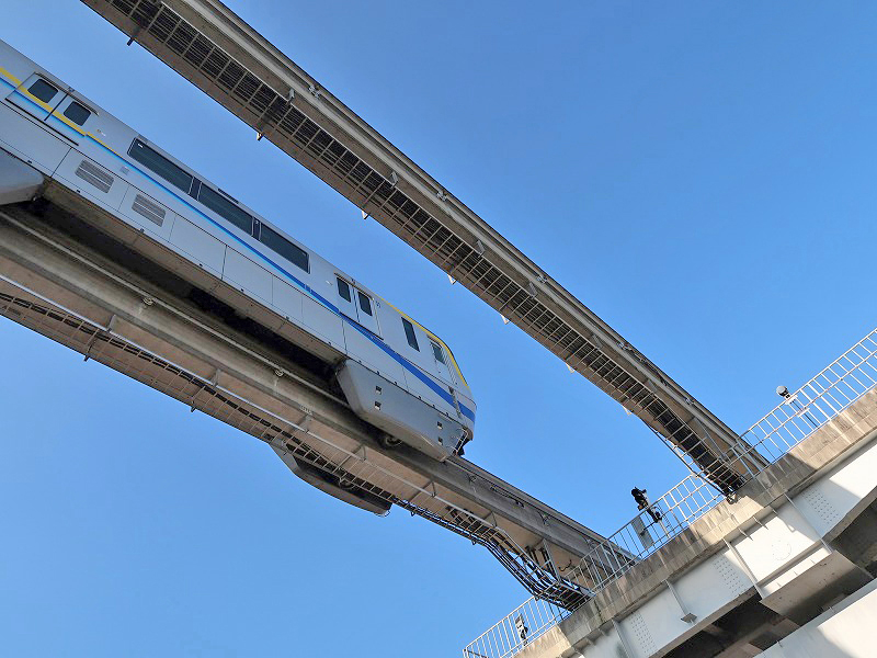 モノレール下なので電車を見上げたりして待ち時間を潰します。
