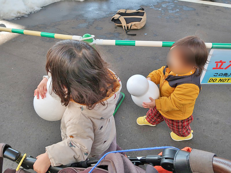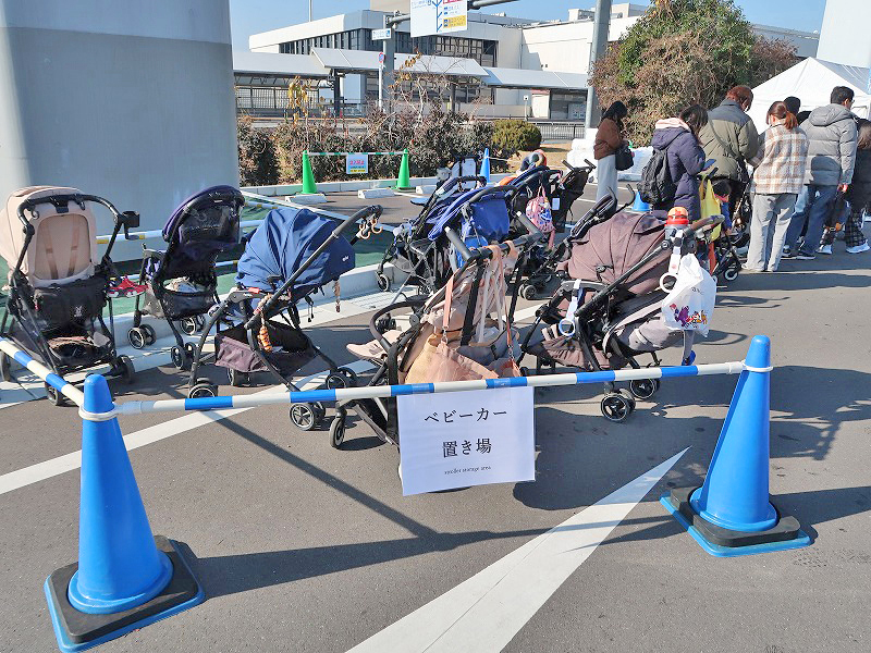 滑り台の手前にベビーカー置き場があるので、ベビーカーは置いて並ぶんだって。