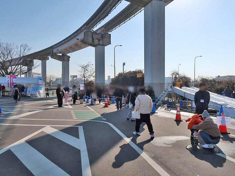 待つ間も続々と人が増え、会場の奥にある「雪遊び広場」「雪の滑り台」もどんどん列が伸びている気配がします。