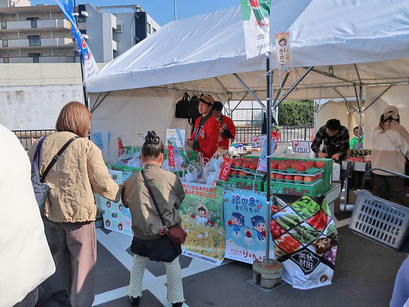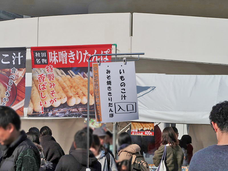 子どもが「あの長いやつ(きりたんぽ)がいい」というので、位置番手前のブースに並びます。