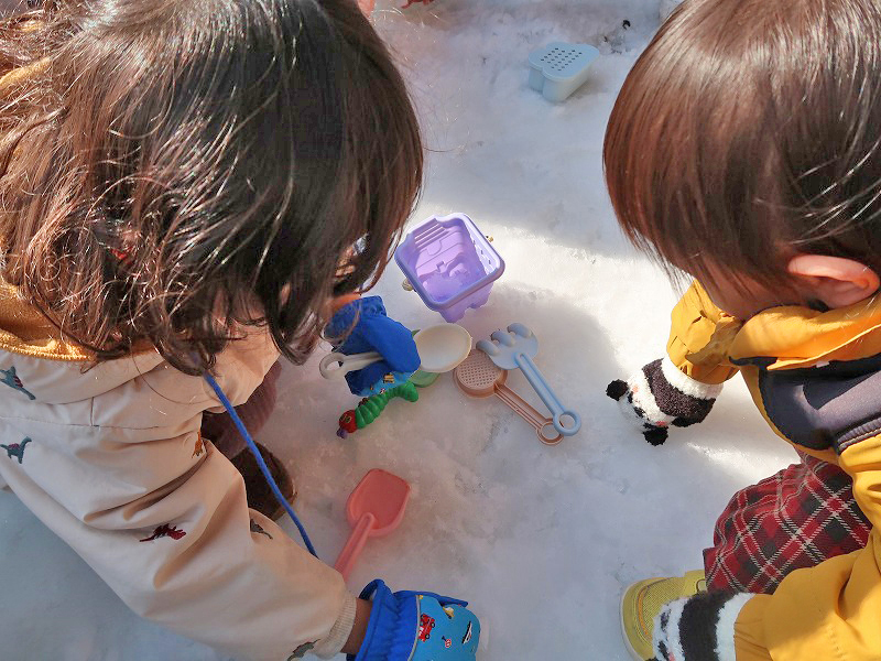 踏み固まっているので砂遊び道具が必須かも。