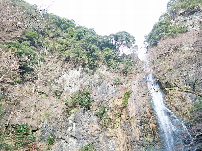 坂を登り切ったら車の走る府道と合流しますが、ここからもわずかに滝が見えました。