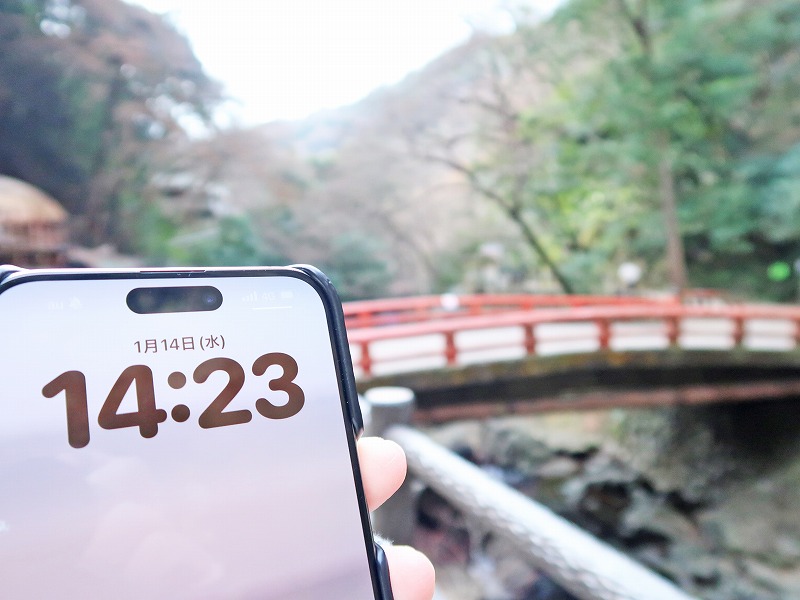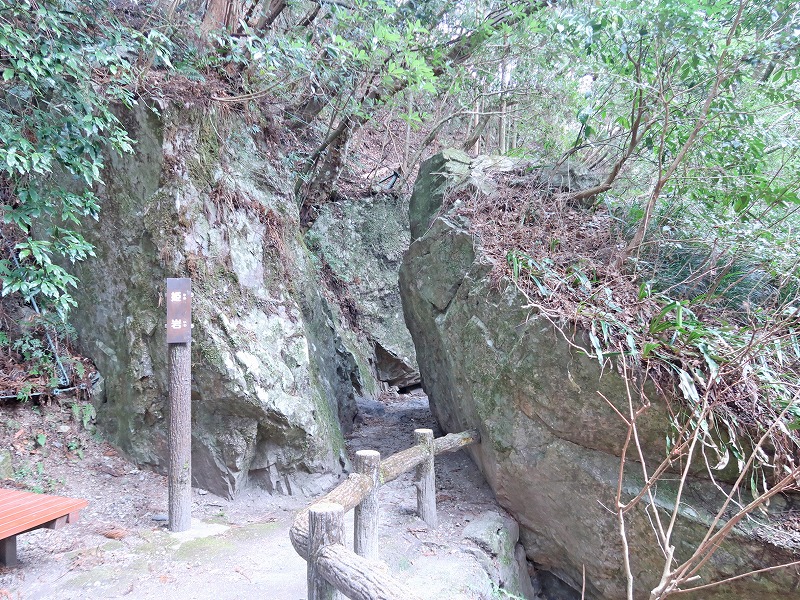 ※橋の左手にある「姫岩」の隙間を入っていく道