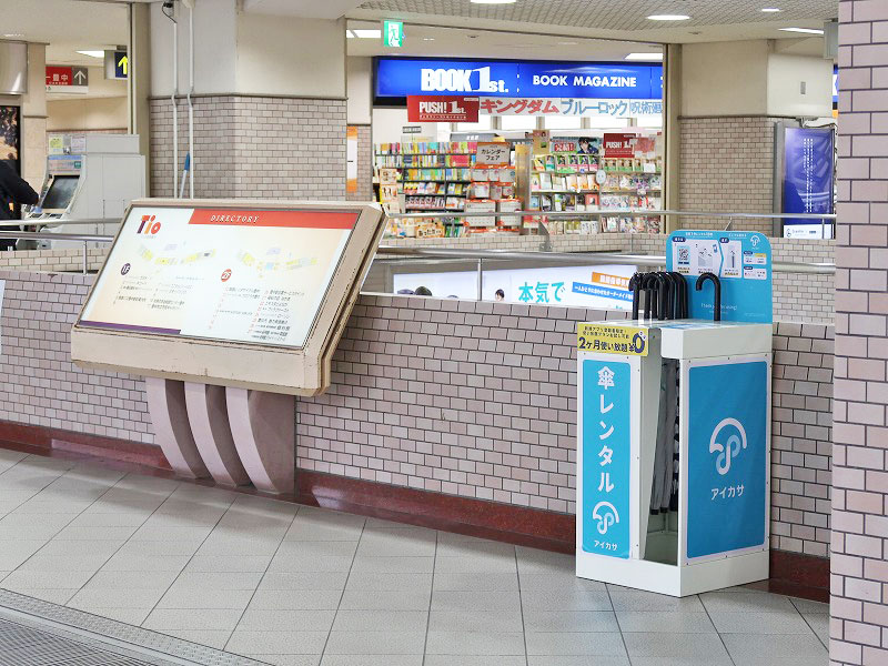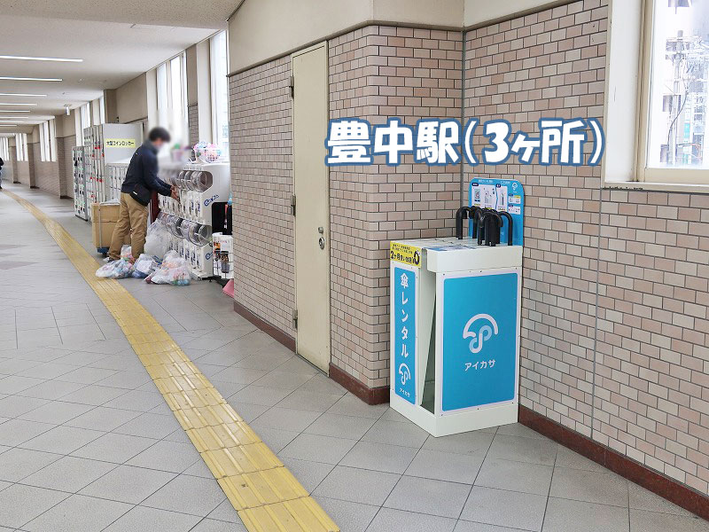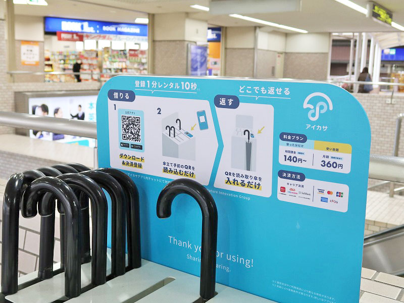「アイカサ」は日本全国に傘を設置しているシェアリングサービス。阪急電車では2025年6月から順次展開しているみたい。