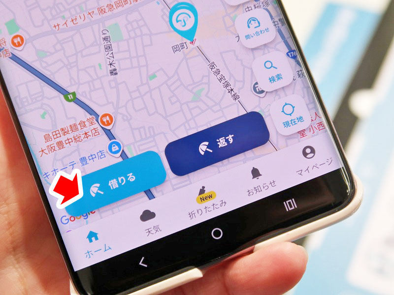 アプリの下部に「借りる」ボタンが出てきましたので、そちらをポチっと押すと