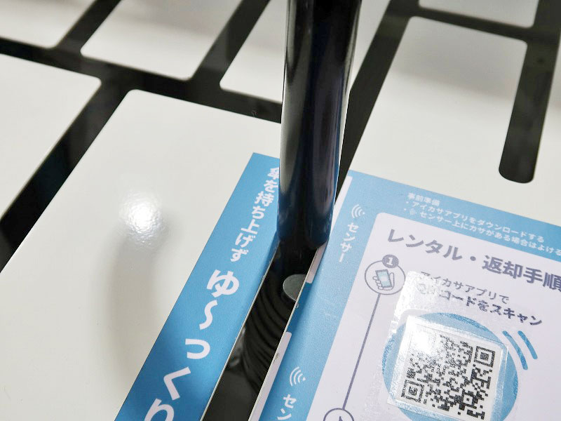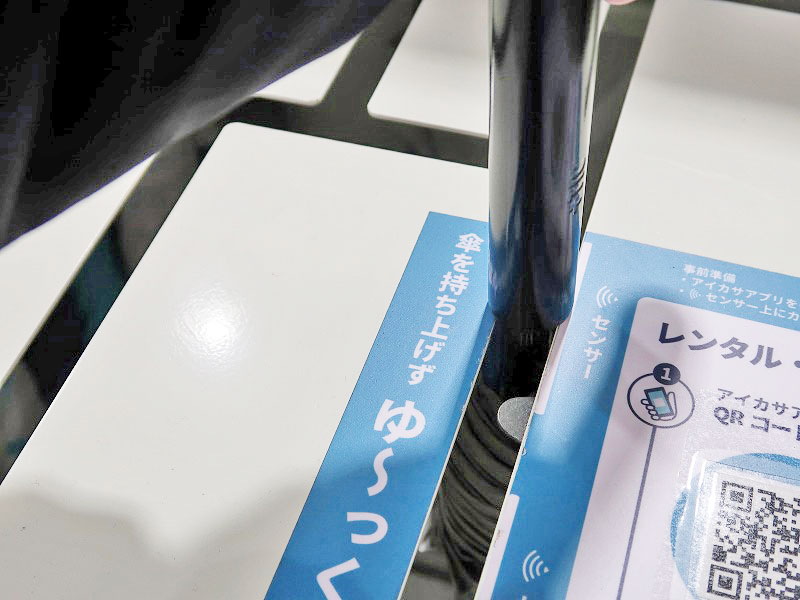 よく見てみると「傘のレンタルスタンド」みたい。前に読者さんから情報提供をいただいてたやつか!