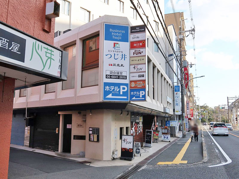 駅前にある「ビジネスホテルつじ井」を訪れていましたよ。