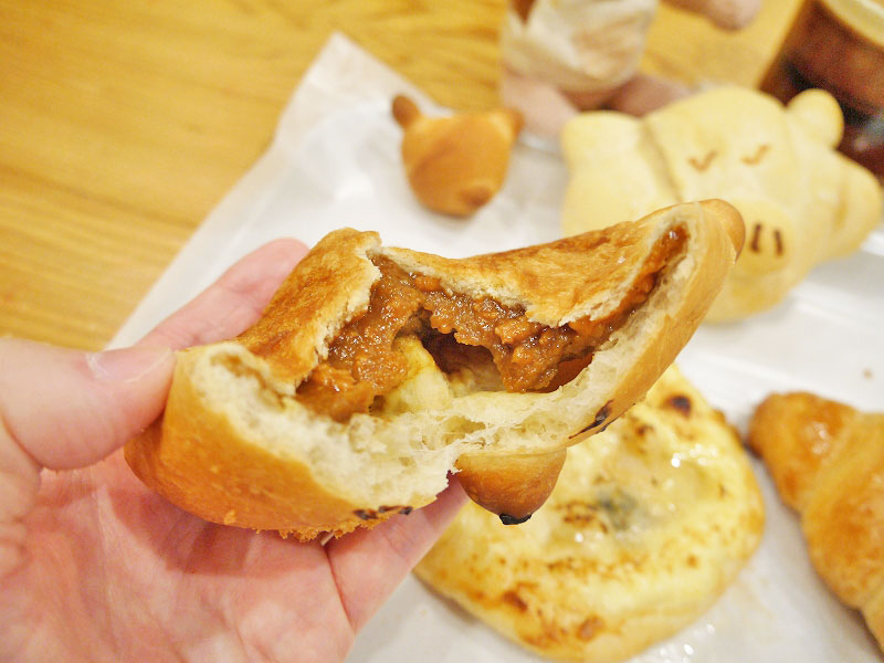 手に持つと、ずっしり重いぞ。割ってみると、中には旨味たっぷりな焼きカレーがぎっちり♪辛さ控えめなのでお子さんにもグー。