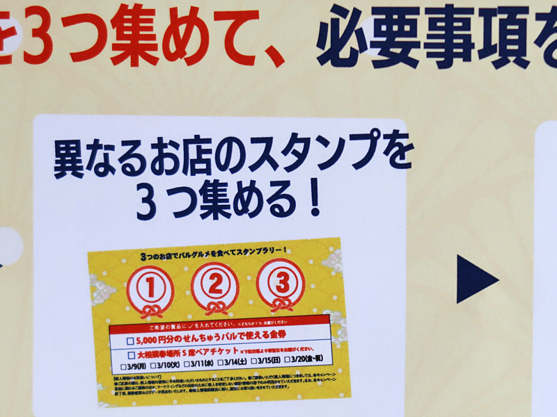 今回は”毎年恒例”となりつつある、せんちゅうパルの「グルメラリー」にチャレンジしたいと思います。