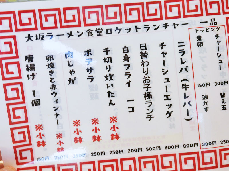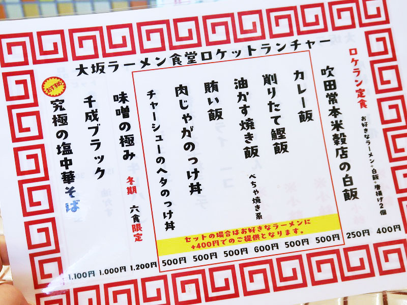 千成町に「大坂ラーメン食堂 ロケットランチャー」がオープンしていましたよ。