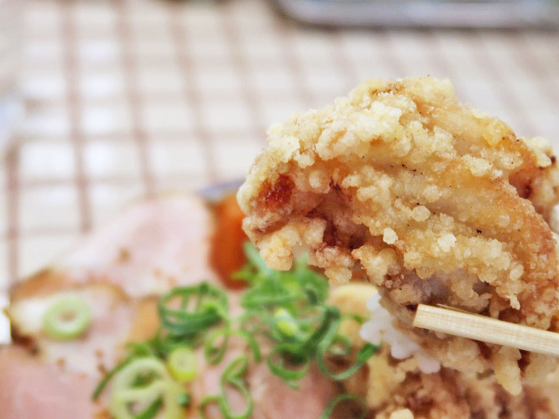 ザクザク食感&ジューシーなモモ肉の唐揚げは、1個でも食べ応え十分。