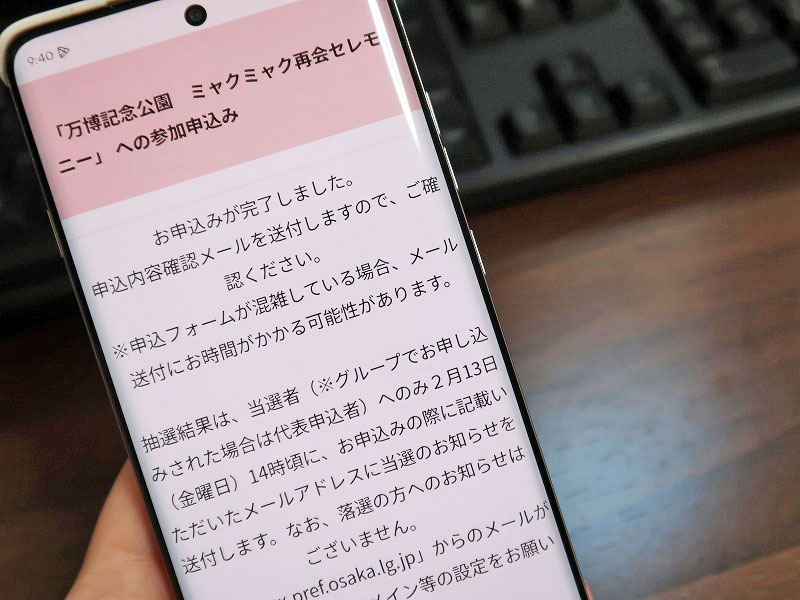 万博記念公園で開催される「ミャクミャク再会セレモニー」の大阪府民限定の観覧申込がスタートしていましたよ。