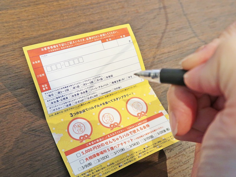 応募箱の横に、ペンなど設置されているので、必要事項をスタンプカードに記入します。