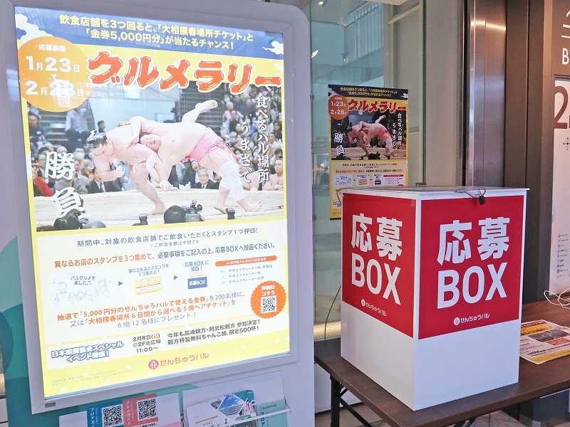 ちなみに2月8日(日)は、ちゃんこ鍋が無料でふるまわれるスペシャルイベント『春場所応援!試食るパル場所』があるらしいので、この機会にせんちゅうパルへ行ってみられては?