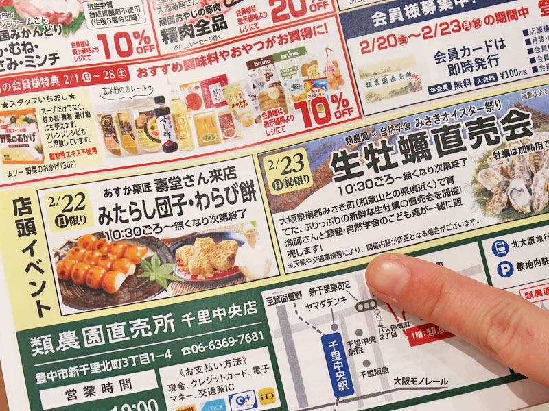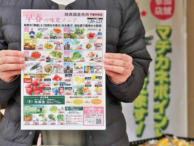 お待たせしました!千里中央北側にある「類農園直売所 千里中央店」から