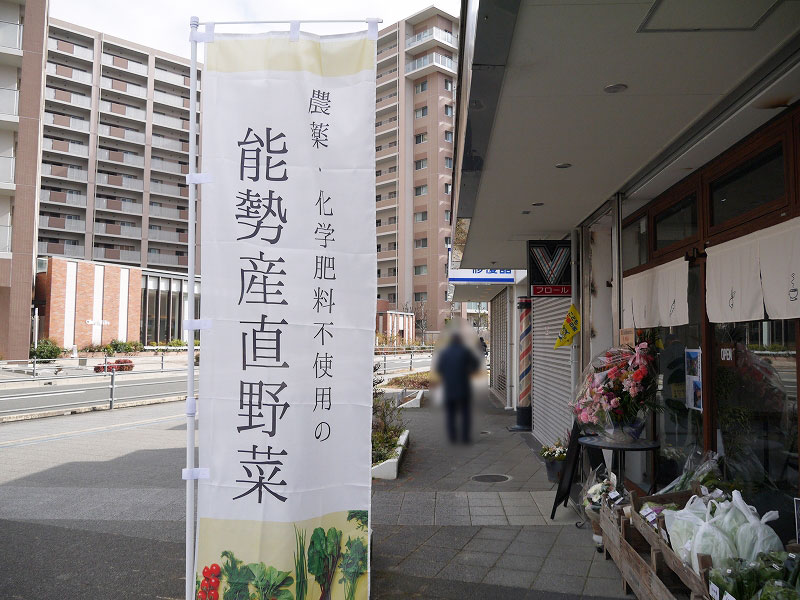 店先には「農薬・化学肥料不使用の能勢産野菜」が販売されていますね。