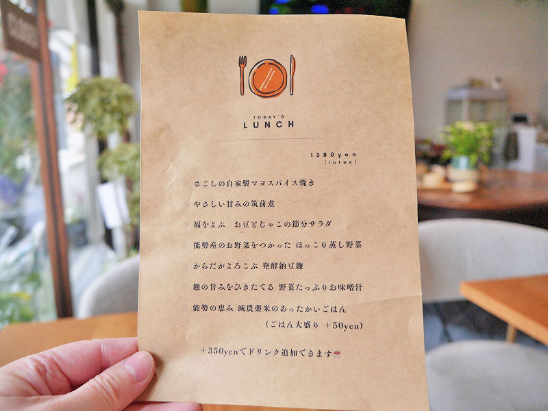 ランチメニューは一種類で、毎日メニューが変わる「日替わりランチ」。